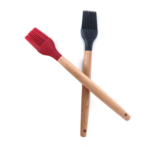 Lot de 2 pinceaux à pâtisserie en silicone avec manche en bois pour la cuisson, les grillades, la cuisson et la propagation de l'huile,